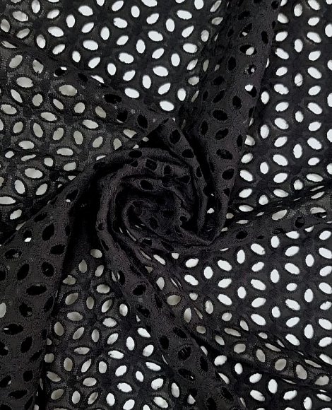 Легкая хлопковая ткань. По всей поверхности полотна сделана вышивка с цветочным и геометрическим орнаментом. Ткань обладает хорошей гигроскопичностью, дышит. Благодаря натуральному составу ткань подходит и для пошива детской одежды. Прекрасно подойдет для пошива любой летней одежды