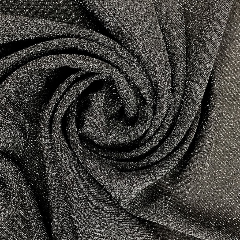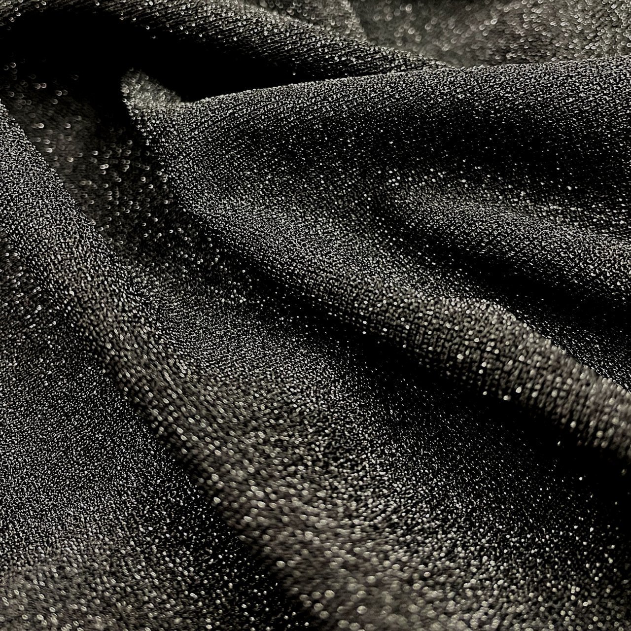Вязанное трикотажное полотно, хорошо растяжимое. Люрексовая нить выведена на лицевую сторону, что придает ткани особый шик. Хорошо подойдет для пошива платьев, туник, футболок и другой легкой одежды. Не прихотлив в носке и уходе.