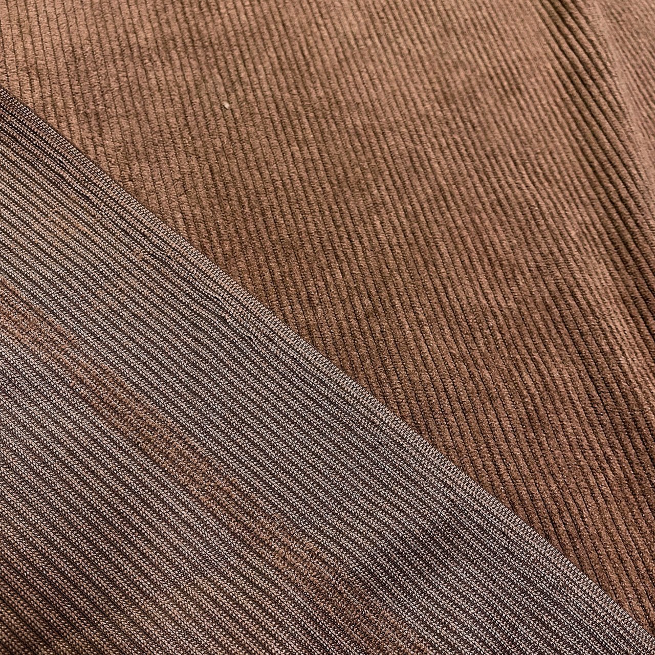 Плотный, и в то же время приятный материал с матовым блеском по лицевой стороне и нежной бархатистой поверхностью. На лицевой стороне классический ворс, создающий фактуру в полоску. Хорошая плотность ткани обеспечивает ее высокую износостойкость. Вещи из вельвета всегда актуальны, удобны в носке и не мнутся. Ткань прекрасно подходит для пошива свитшотов, платьев, юбок, а также спортивных костюмов.